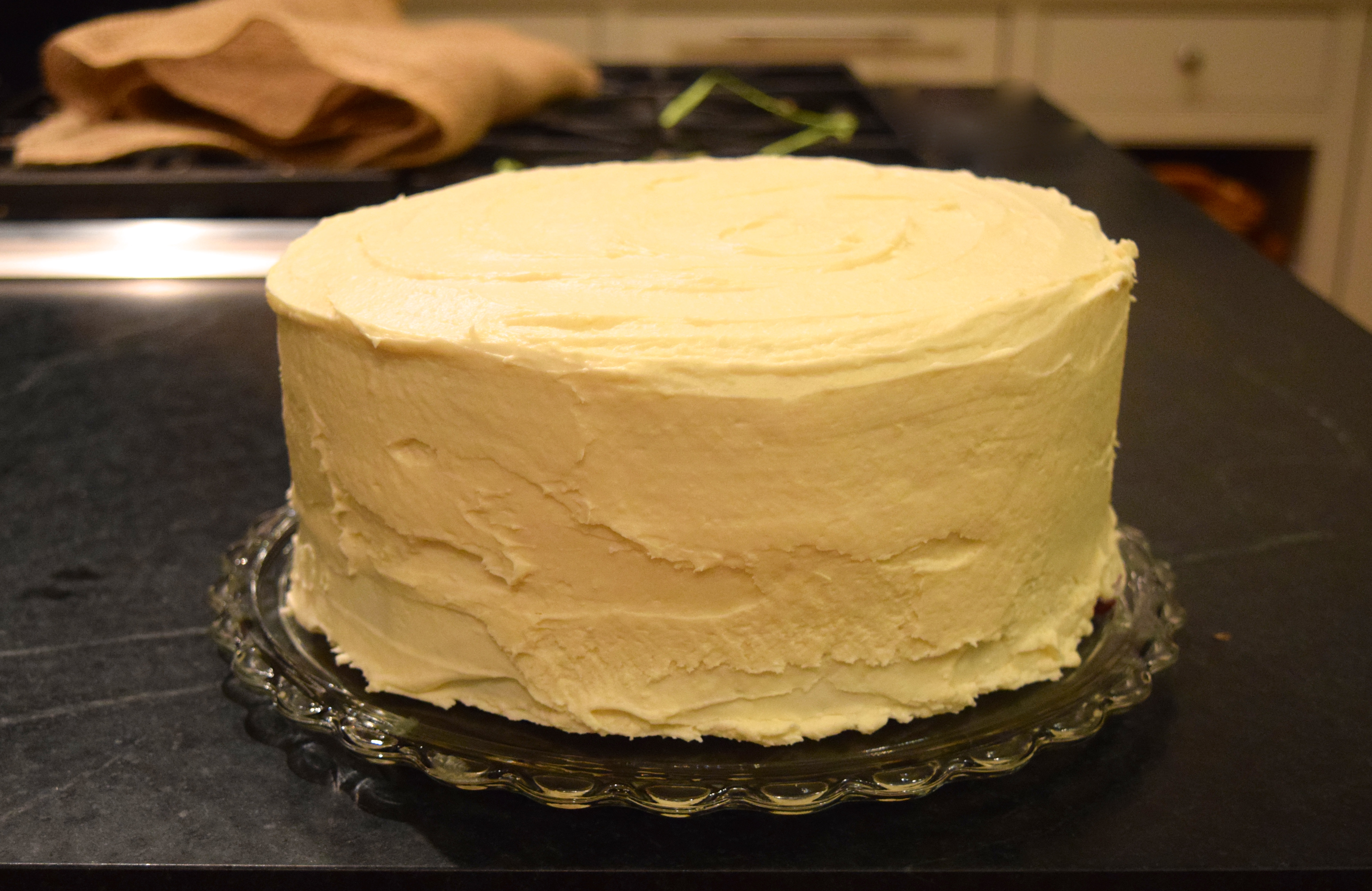 Recently, I needed an elegant cake that would serve twenty. I decided to make a taller version of the cake by preparing one and a half recipes. This gave me three 9-inch layers. I increased the frosting recipe by half. The cake looked beautiful and regal on the dessert buffet. Sadly, I didn’t get a photo.