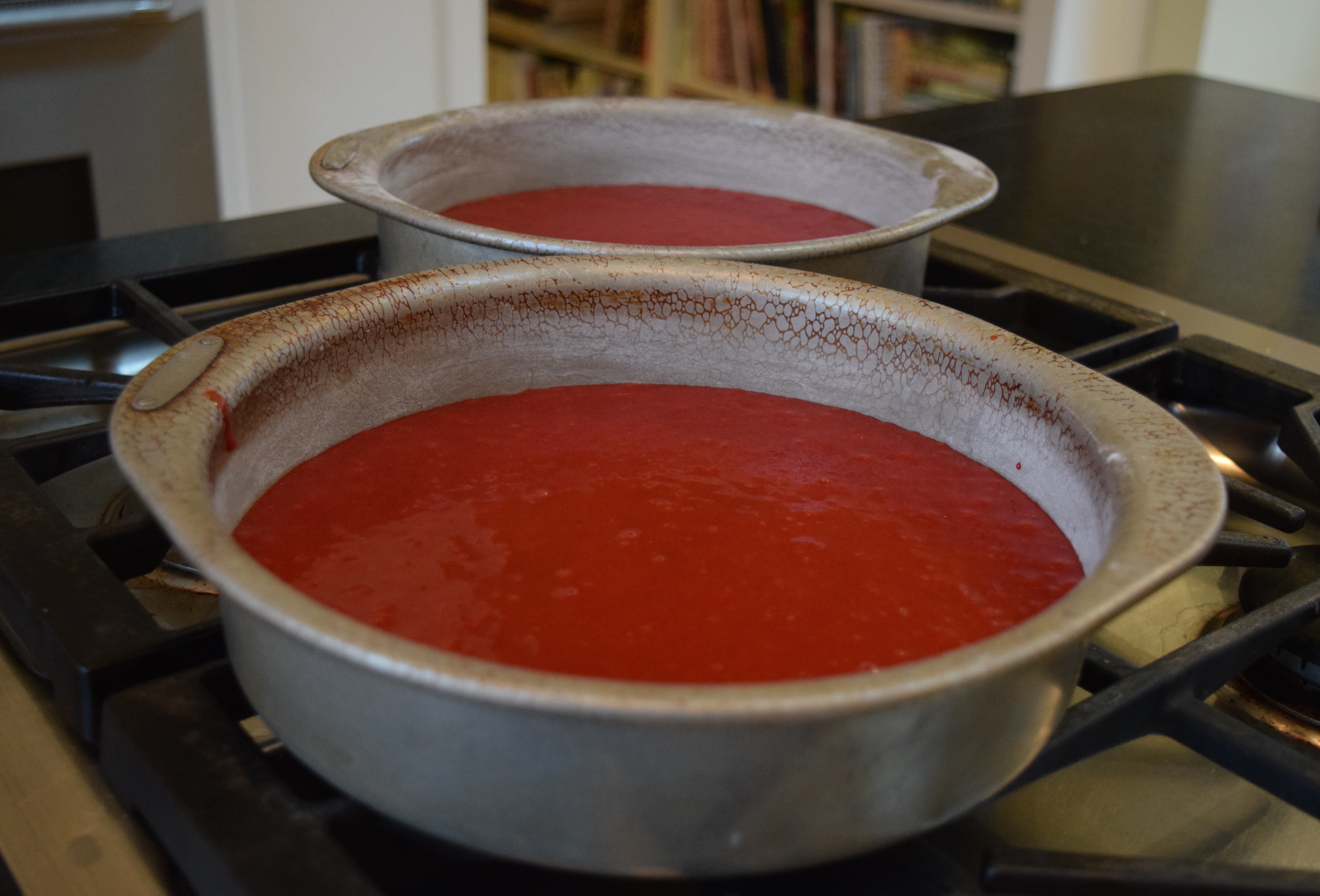 I enjoy making special-request cakes for loved ones on their birthdays. I was especially delighted when my son asked me to make a red velvet cake for his girlfriend, Lily, when she turned 21. I browsed through several cookbooks looking for a good recipe. My first three attempts were not pretty. The turning point came when I added strong coffee to the batter. It boosted the chocolate flavor in extraordinary ways. Now I look for reasons to make this cake!