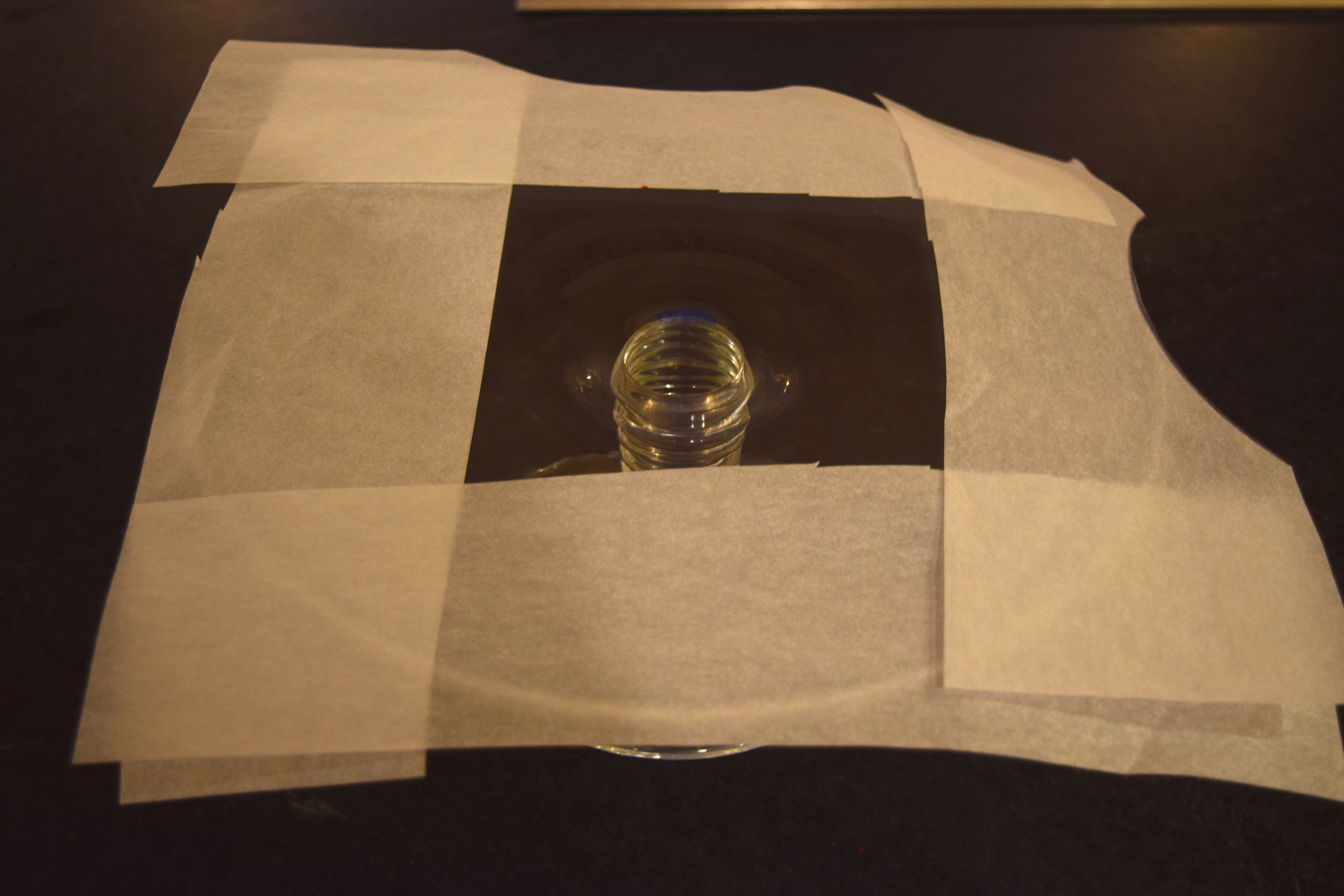 Draw an outline of the cake pan on two sheets of parchment. Cut out the paper disks. If you trim to just inside the outline, your disks should fit nicely inside the pans. Place a liner inside each pan.
