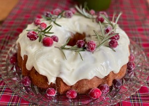 This year, I gussied up the cake for Christmas Eve with pomegranate seeds and rosemary sprigs! So pretty!