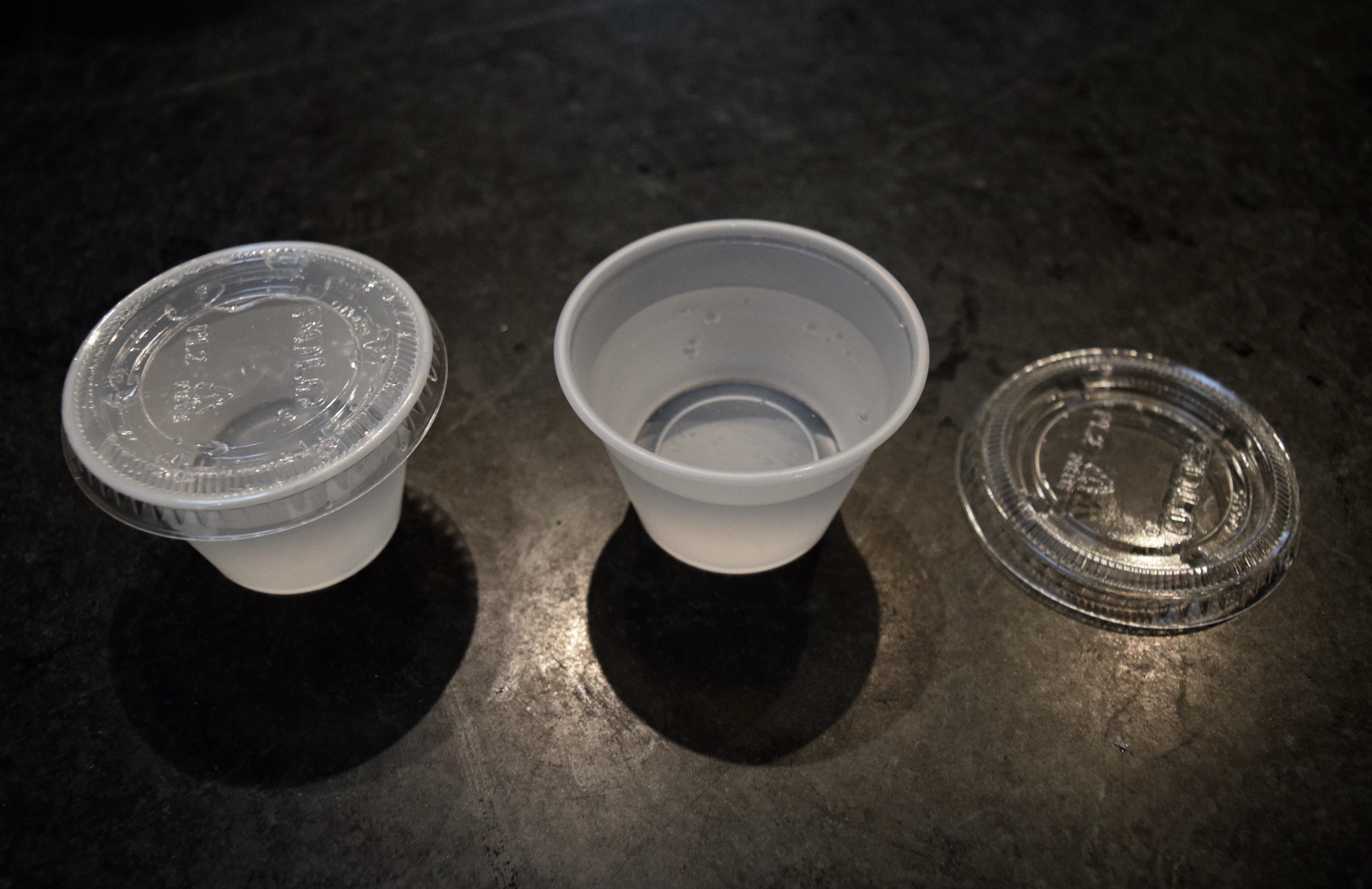 It is simple to make. We found these cups and lids at a salad bar at Kroger.
