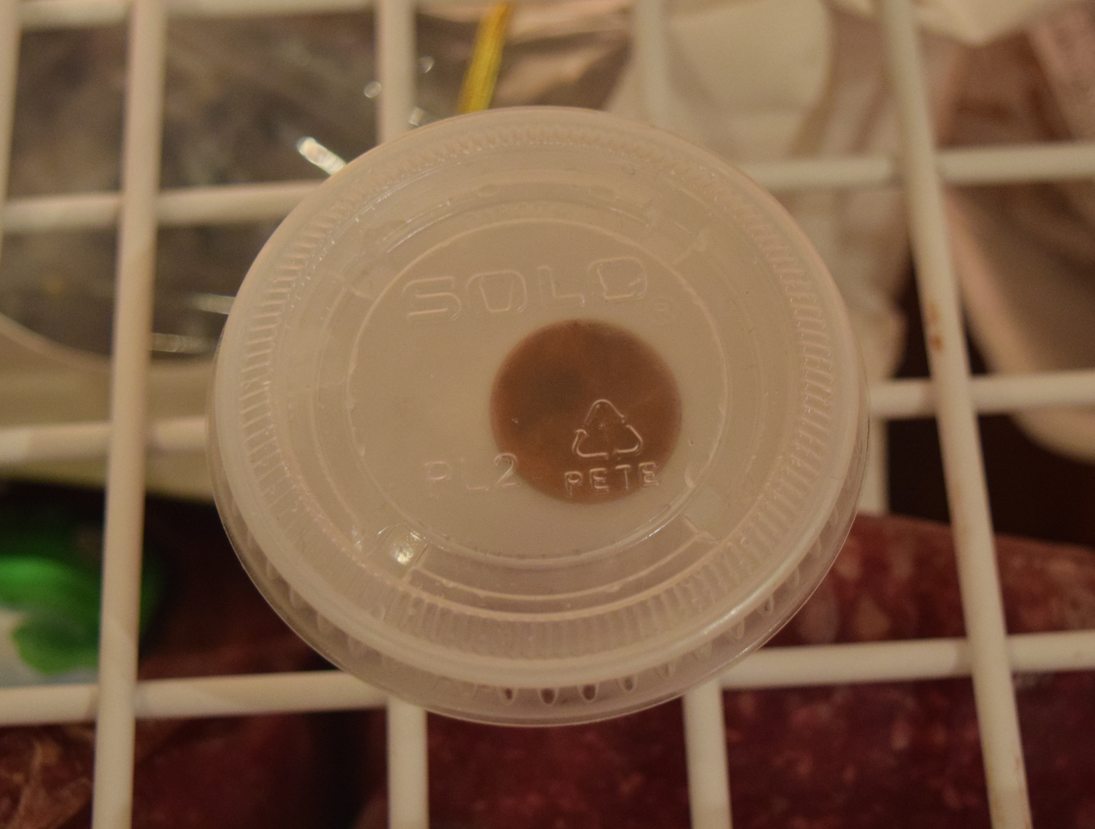 My nerdy husband who devised this contraption says, “Coin on top, food’s not slop. Coin on bottom, food is rotten.” If you can think of a better slogan, post a comment!