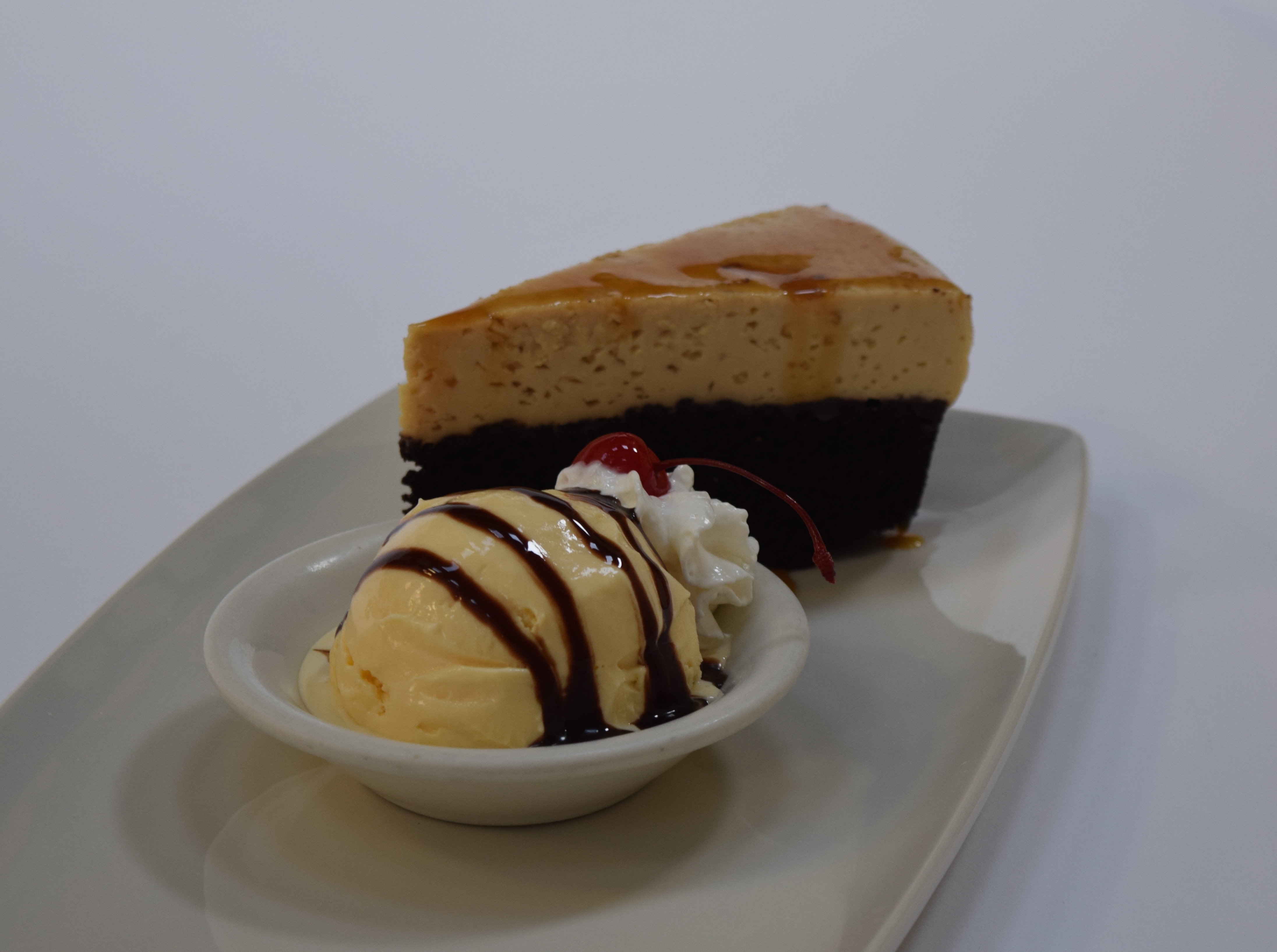 For this fried ice cream, she adorned it with a dollop of whip cream and tilted the stem of the fruit to a jaunty angle instead of having the stem point straight up.