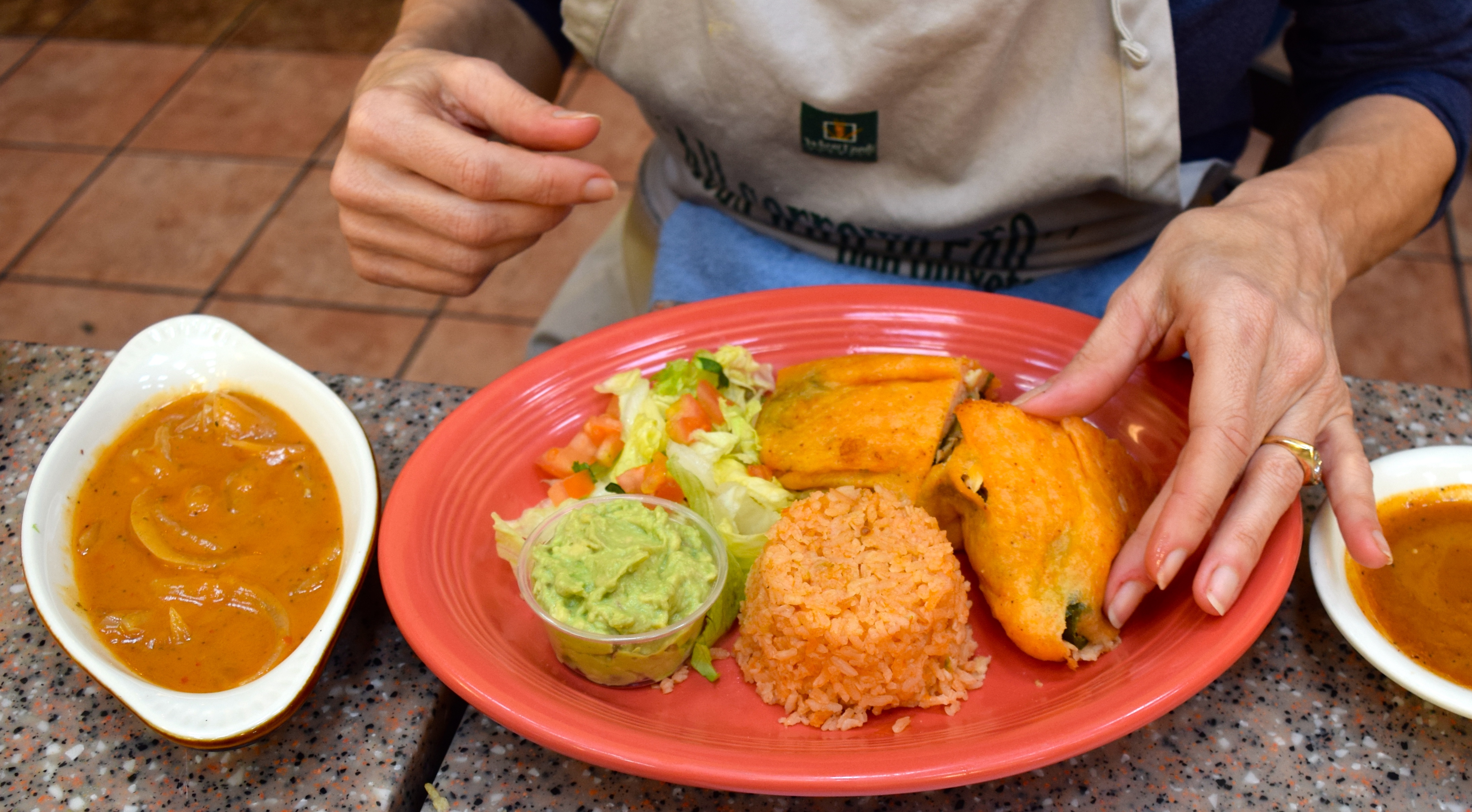 I’ve often wondered what my friend, Mary Carter, did when she went out on food styling jobs, so I was more than happy when she invited me to be her assistant while she arranged new menu items for a photo shoot at Las Palmas. She was hired by Rose Bruce, a graphic designer and the owner of Rose Bruce Marketing. As the project coordinator, Rose hired Mary to style the food, and Richard Suter Photography to photograph it. It was very important to the client that the photographs on the new menu match exactly what the customer was going to be served by his waiter. It had been their experience that if the entree served didn’t look just like the photo on the menu, there would be complaints by the customers. Mary was charged with adding only the embellishments provided by the chef. By the time we finished with the photo shoot, the staff was affectionately referring to Mary as the “Cilantro Lady.”  By the smiles on the staff’s faces, they liked how appetizing Mary had made their food look and wasn’t that the whole point?