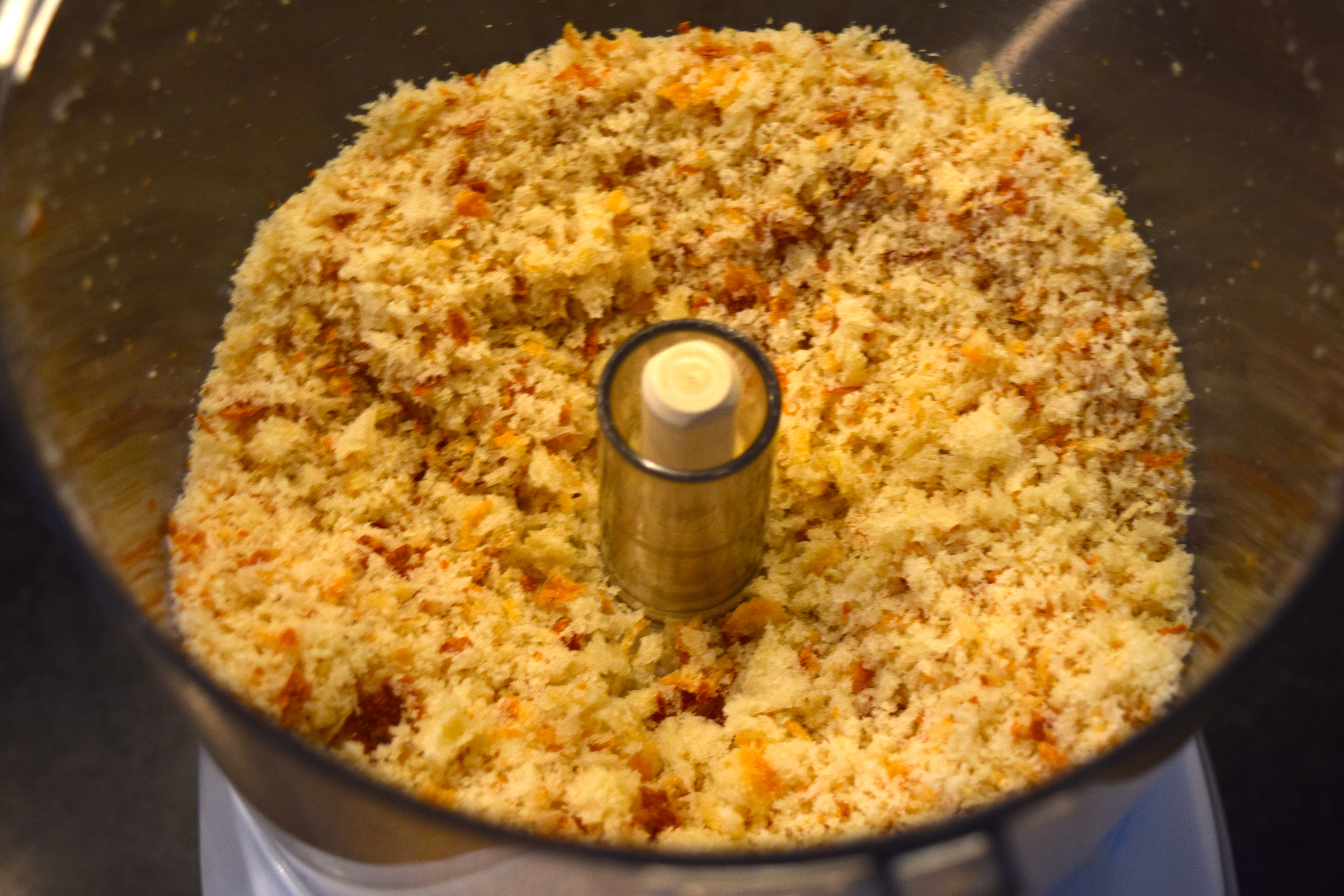 To learn how to make your own bread crumbs, go here, or buy plain, fine bread crumbs.