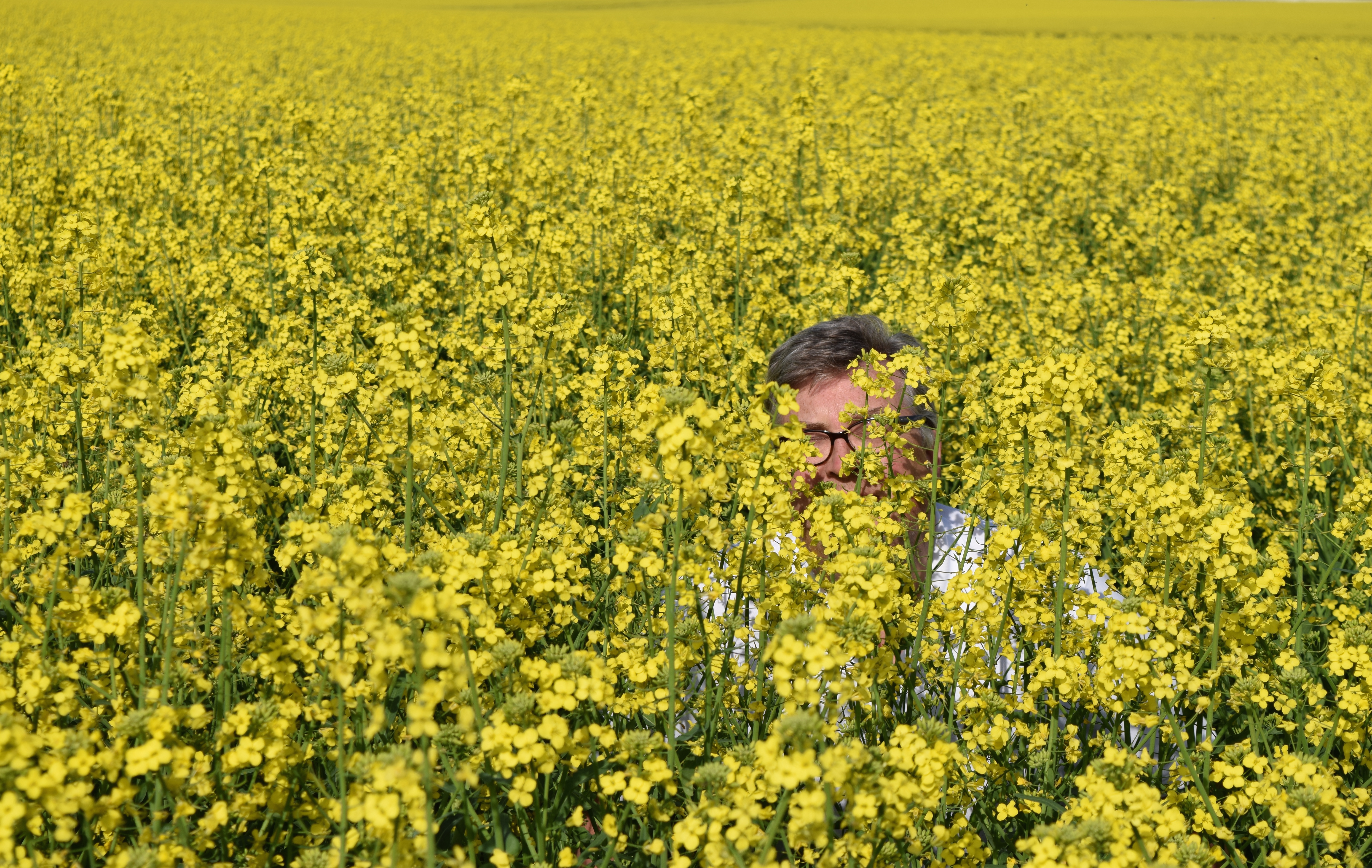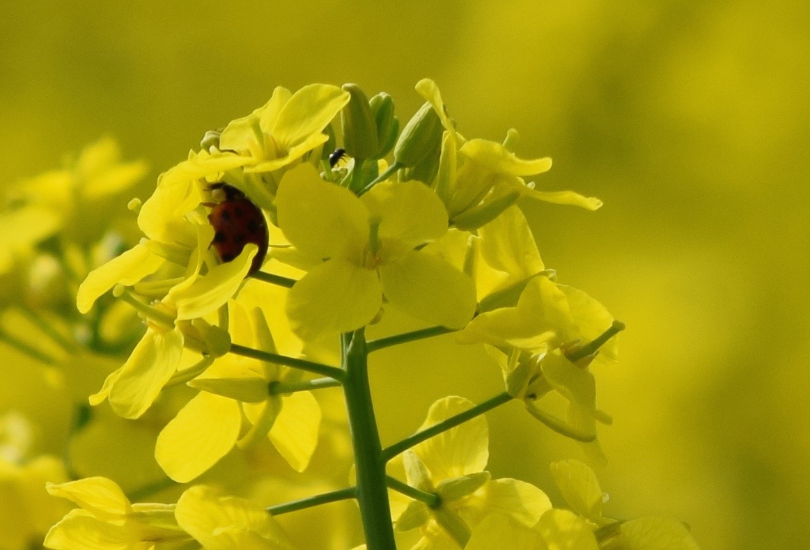 We were driving down the highway and saw this beautiful view.DSC_0631 We pulled off the road and Googled “What are the yellow flowers growing in the fields?” Wikipedia knew exactly what we were talking about; its first response was, It’s a field of rapeseed (Brassica napus — in the same plant family as mustard, cabbage, and kale). The seeds produced by these plants are crushed to make rapeseed oil.