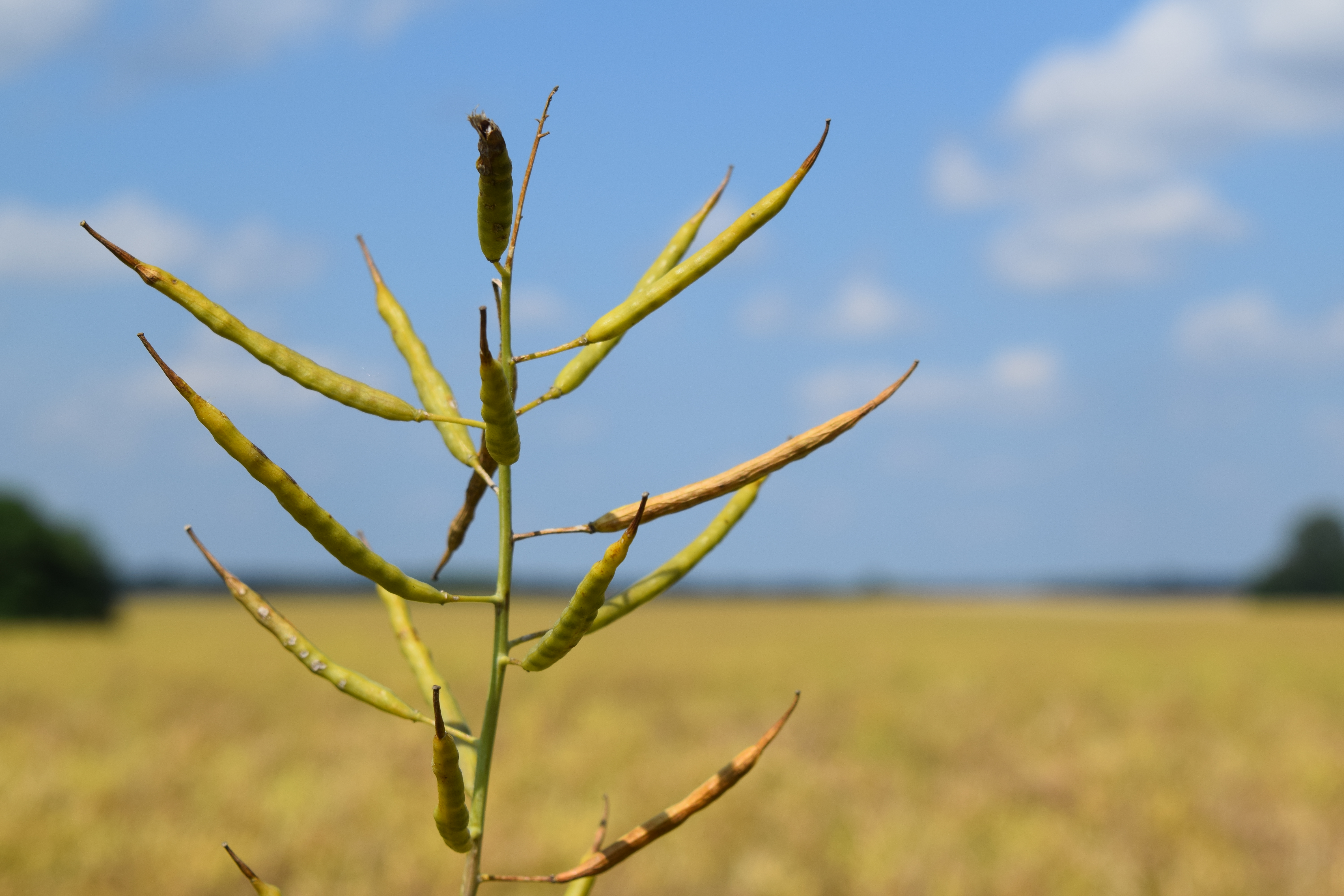This is a photo of canola seed pods taken on June 12. The seeds start to grow inside the pods once the flowers are pollinated and the blooms drop.