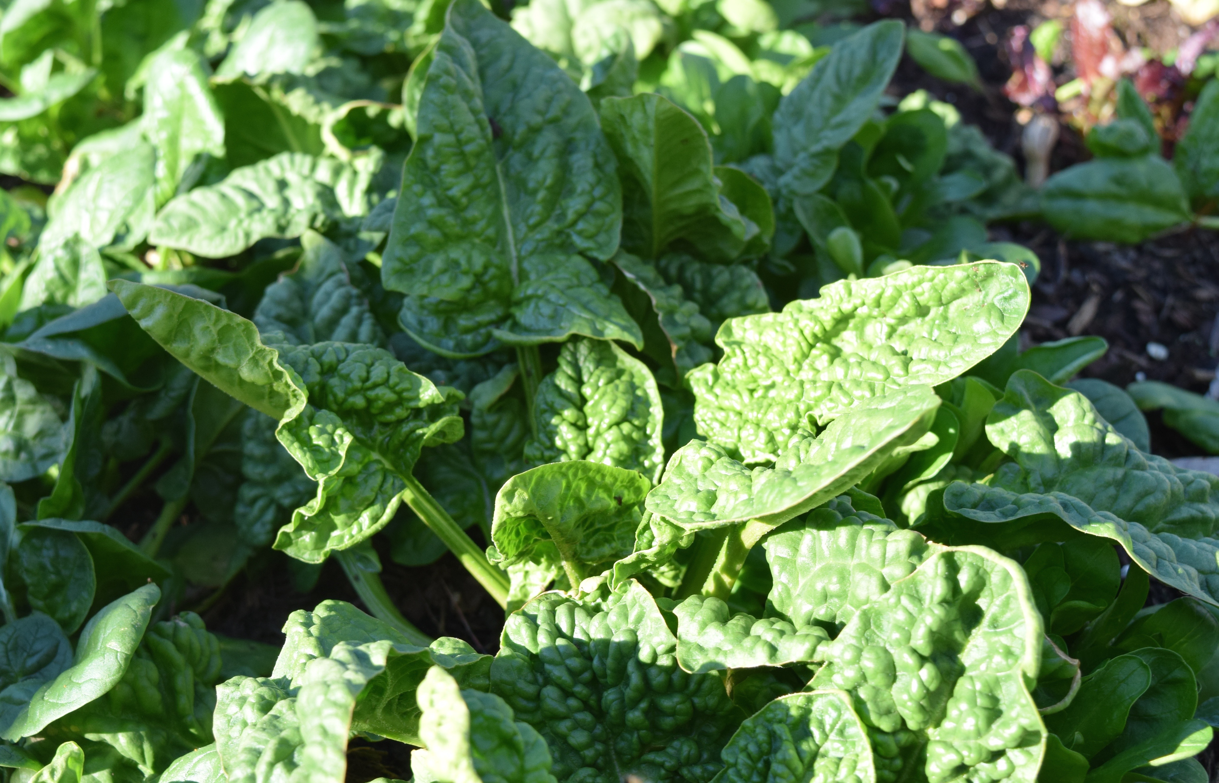 Seeds planted 10/2 to the right of the Bloomsdale spinach. We continue to harvest this variety now. Note those smooth leaves. Just sayin’.