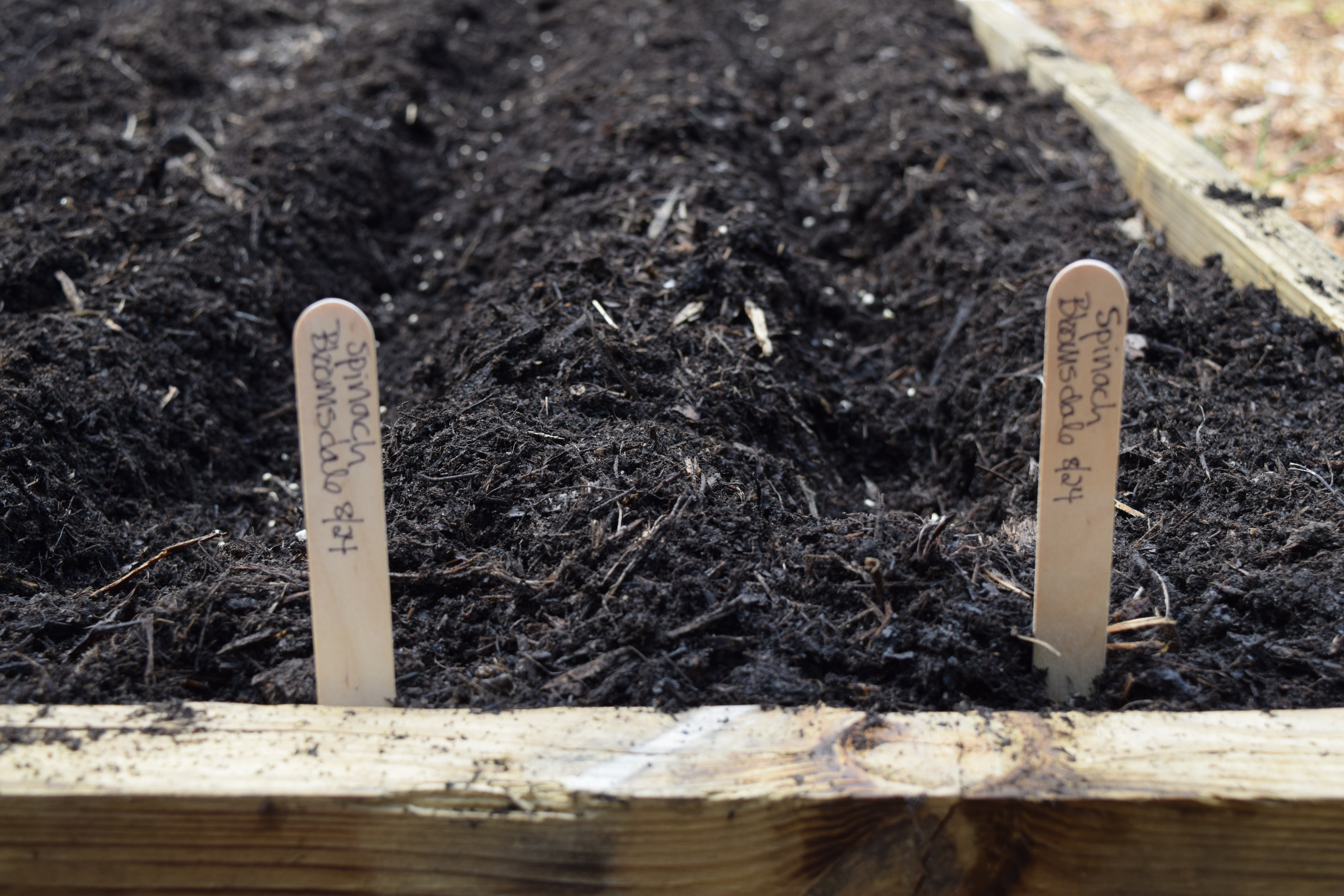 2 rows of seeds planted 8/24. Only half the seeds germinated so I consolidated the two rows into one. We harvested the Bloomsdale crinkly spinach leaves all winter. The plants started to bolt May 3rd and I pulled them.