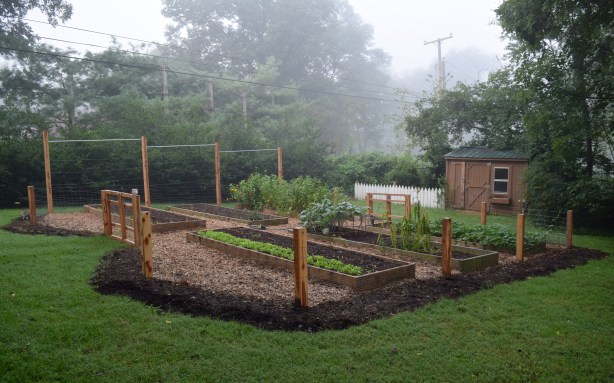 Many years later, I was looking at a barren, sunny area in my backyard and had a vision for a way to get more garden space for my vegetables — make raised beds using those old boards. I had a handyman build four 4 x 13-foot beds for me. Last summer, Jeremy Lekich, owner of Nashville Foodscapes, built two more raised beds and filled all six of them with his gorgeous, dark, chocolate-colored compost. Next, Jeremy and his team built a beautiful, simple, chicken-proof fence around the beds.