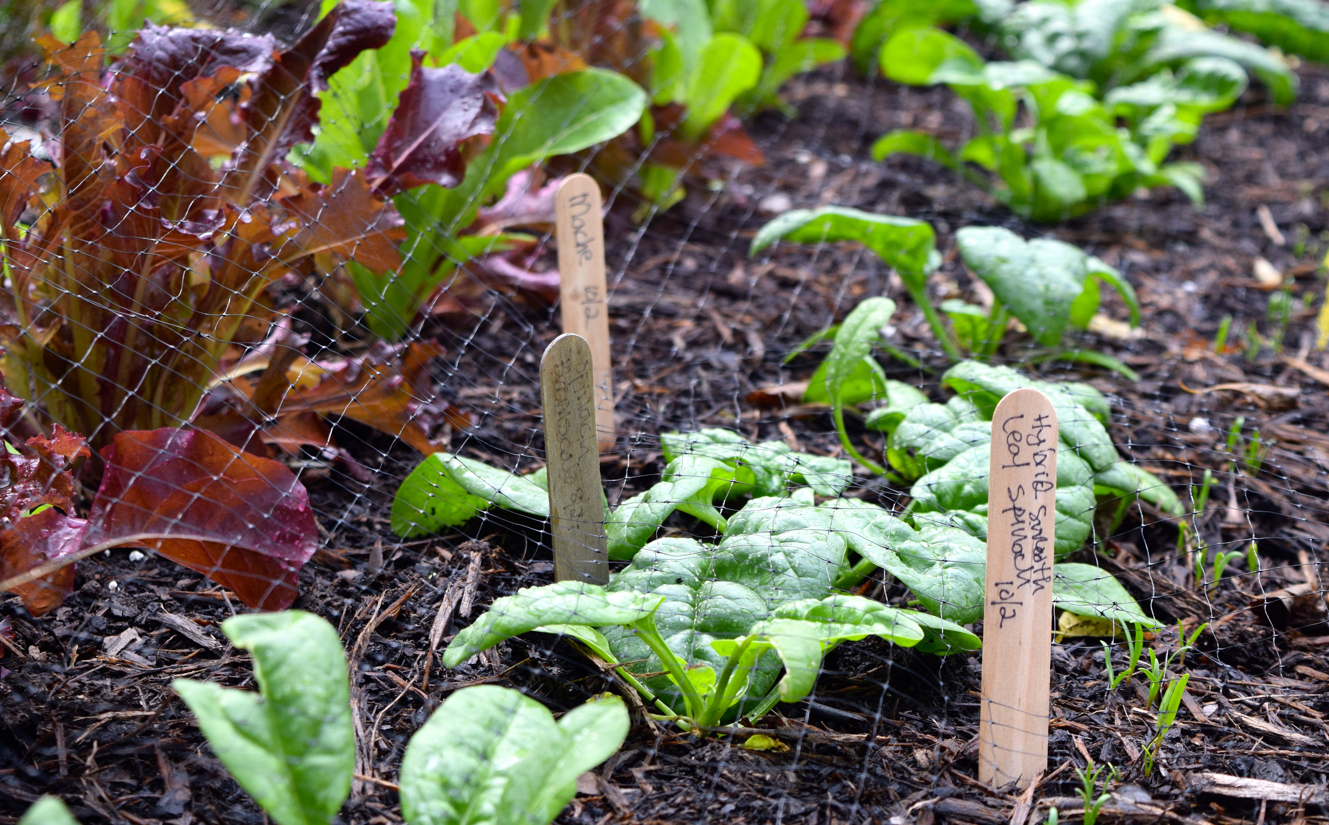 -I now know which plants are the most cold-hardy: spinach, mache (corn salad), green onions, leeks, and carrots. I think the beets, kale*, and garlic could have made it, had I mulched them with straw.