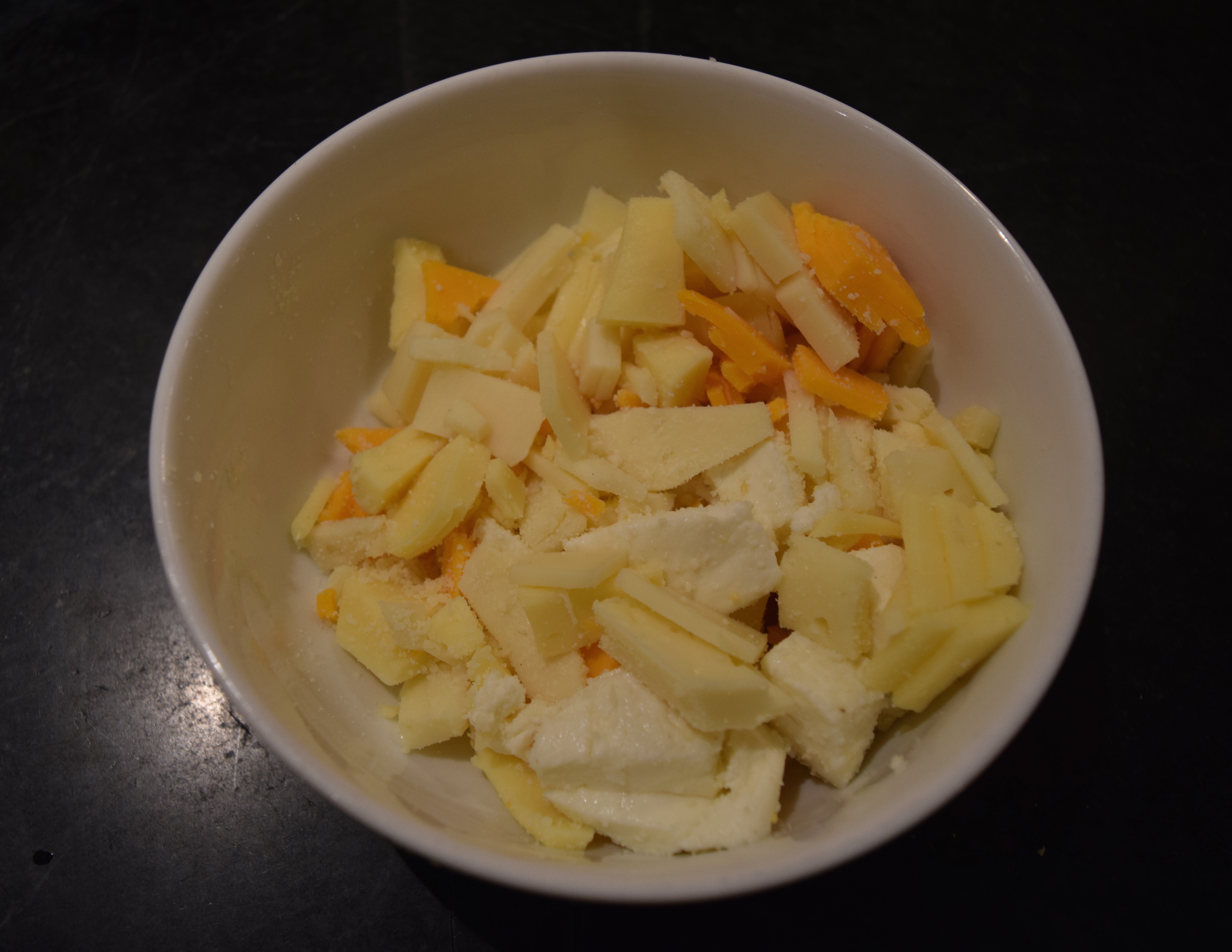 Once, I mixed a bunch of cheeses left over from a cookout and used them for the cheese portion of the recipe. This worked just fine.