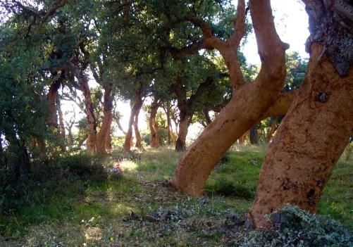 We pulled over to investigate and suddenly realized we were looking at a cork tree farm. Cork oaks, Quercus suber, to be exact. We were all so excited to figure this out; it seemed like the light bulb went off in all of our heads at the same time. Where corks came from was just not one of those questions any of us had ever considered, and now the question and the answer were presented to us at the same moment. That was memorable.