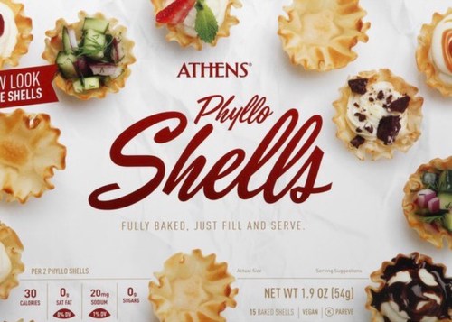 Having two or three boxes of pre-cooked Athens Phyllo Mini-Shells in the freezer and a round of brie in the fridge during the holidays is the key to being able to make this appetizer, with the topping of your choice, at a moment’s notice.