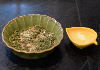 Melt the butter and add to the bowl of seasonings. Stir.
