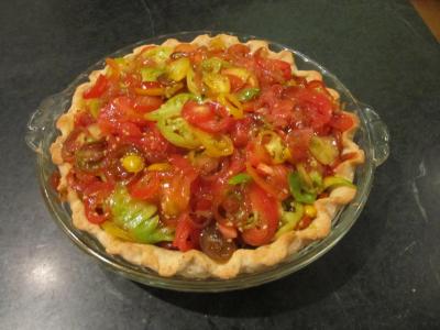 is to core, slice, salt, and drain the tomatoes to divest them of their watery juice and thereby prevent a soupy, soggy, messy pie.
