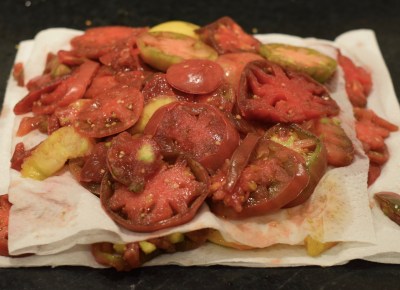 1. Great! The Farmers Market near Bud’s Liquors has tons of Cherokee Purples and a few other heirlooms, Wendy. The key is to use flavorful tomatoes (and draining the tomatoes).