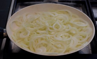 Thinly slice the onions. Salt very lightly with a pinch of salt and sauté in 2 tablespoons of olive oil over medium heat for about 10-15 minutes.
