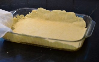 Preheat the oven 375º. While it heats, place the dough-lined pan in the fridge to chill for the 15-20 minutes it takes to heat the oven. This is a necessary chilling period.