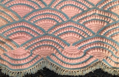 Almost like my grandmother did in 1957 when she crocheted this baby blanket for me. I’m just now noticing that Grandma and I both liked two-toned geometric designs!