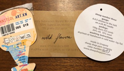 The blue/gray yarn is Knitcol. On the Stitching Post’s website, they show how the Knitcol colorways look when knit up. Take a look.