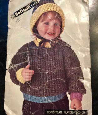 The Home Team Player sweater pattern came from the now-defunct Conshohocken Cotton Company and has been my favorite baby sweater pattern since the 1980s. The pattern is nowhere to be found for purchase on the Internet or in stores, so I’ve included it in this post. My pattern looks like an old family recipe. It is as well-loved as Mom’s Apple Pie!