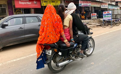 We saw women riding side-saddle on motorcycles throughout India.