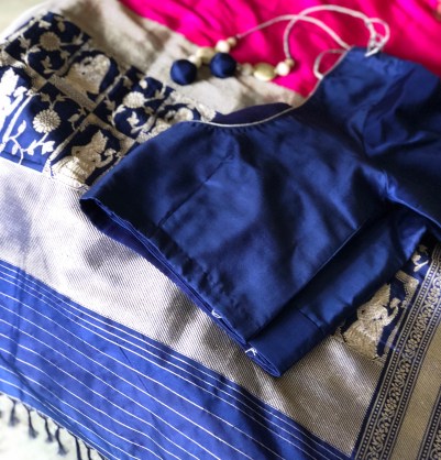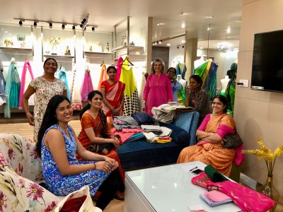 Avani is the talented owner and designer at Studio AJ. She meets with her clients and discusses blouse design and how they would like the cut-off end of the pallu to be finished.