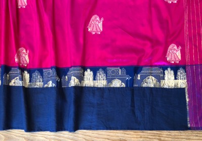 Notice the sensational pallus on the mannequins at Mandira chic saree shop in Hyderabad. What was once six flat yards of fabric has been transformed into a striking outfit when wrapped around the female shape. That is the beauty of the saree –it is versatile enough to suit any occasion and flaunt any figure.
