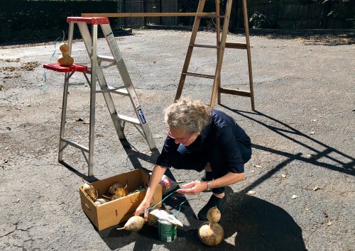 A few years ago, my maker friend, Mary Stone, grew squash vines loaded with pear-shaped gourds in her backyard vegetable garden. An idea was percolating in her head. She wanted to use the gourds to make birdhouses to give as hostess gifts to some friends.