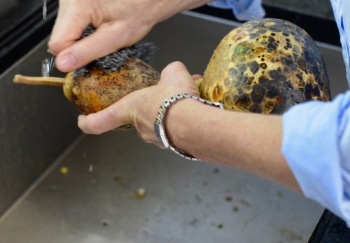 She then rinsed them with water. We allowed them to dry for about thirty minutes before varnishing.