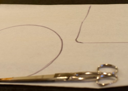 Place the square cake on a large sheet of parchment paper. Cut the round cake and place the halves on two sides of the square, as shown.