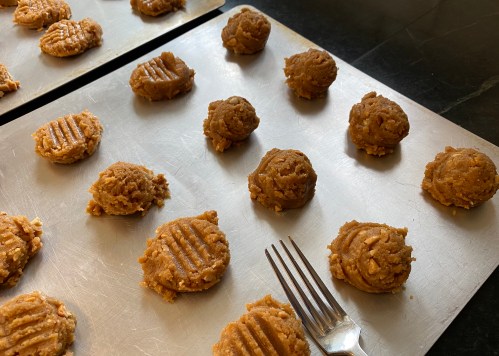 “They only have three ingredients: one egg, one cup of creamy peanut butter, and one cup of sugar,” said Katie. This easily-remembered recipe makes them perfect for scaling up in a commercial kitchen or at home.