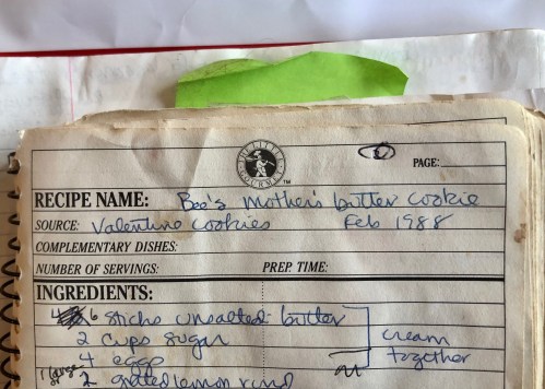 When it comes to making dough suitable for cutting out cookies, there is one recipe I have used for the last thirty years, Bee’s Mother’s Butter Cookies. I laugh when I look at the recipe in my old cooking diary because it reminds me that at one time I thought I could save a few calories by cutting out a third of the butter. As if.