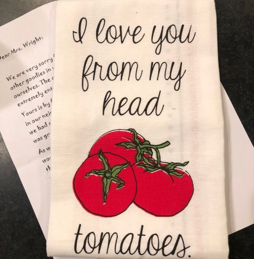 One dishtowel will stay in my collection forever, and there is a story about it here. RIP to my dear and funny friend, Carol, who died two years ago from breast cancer.