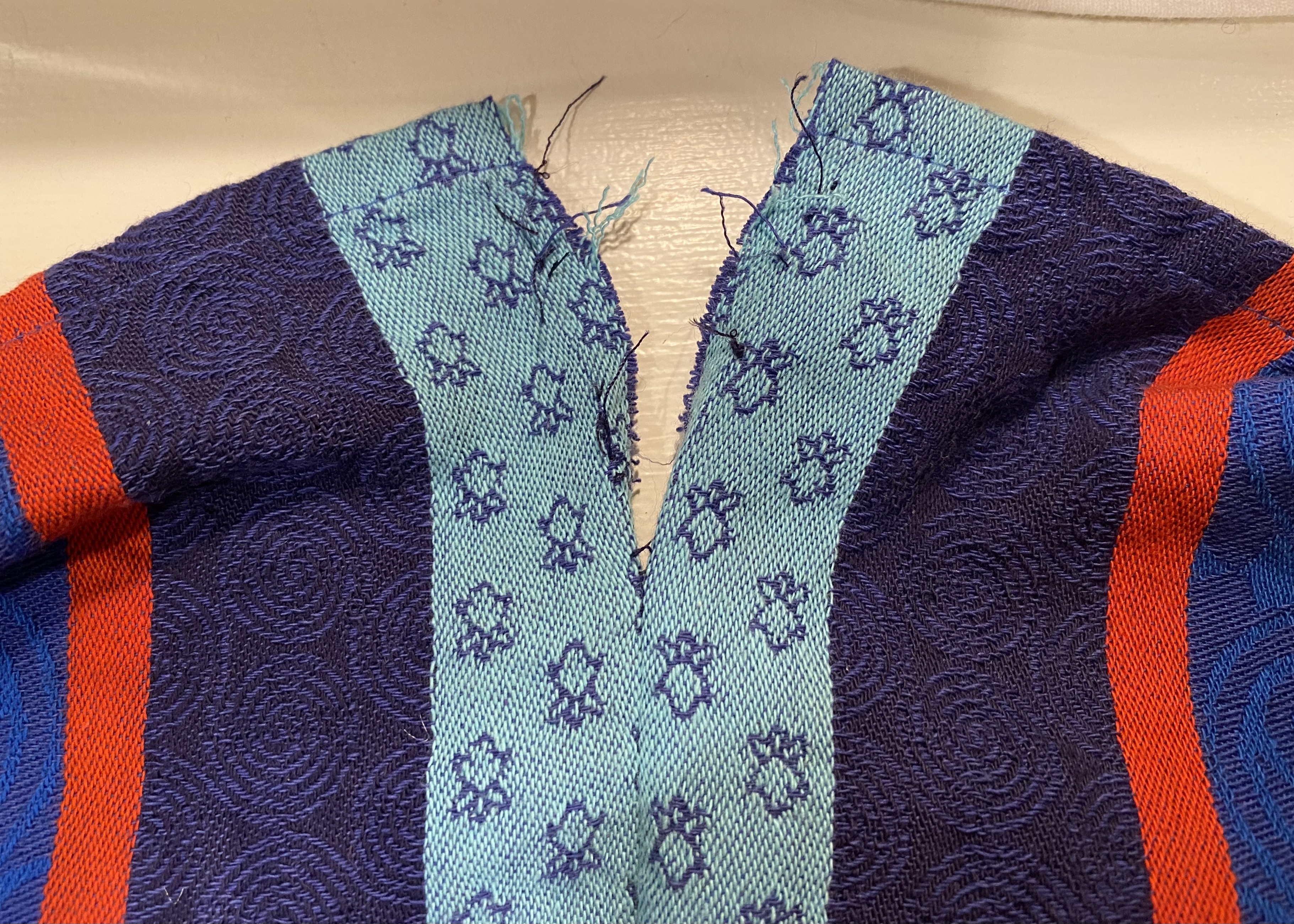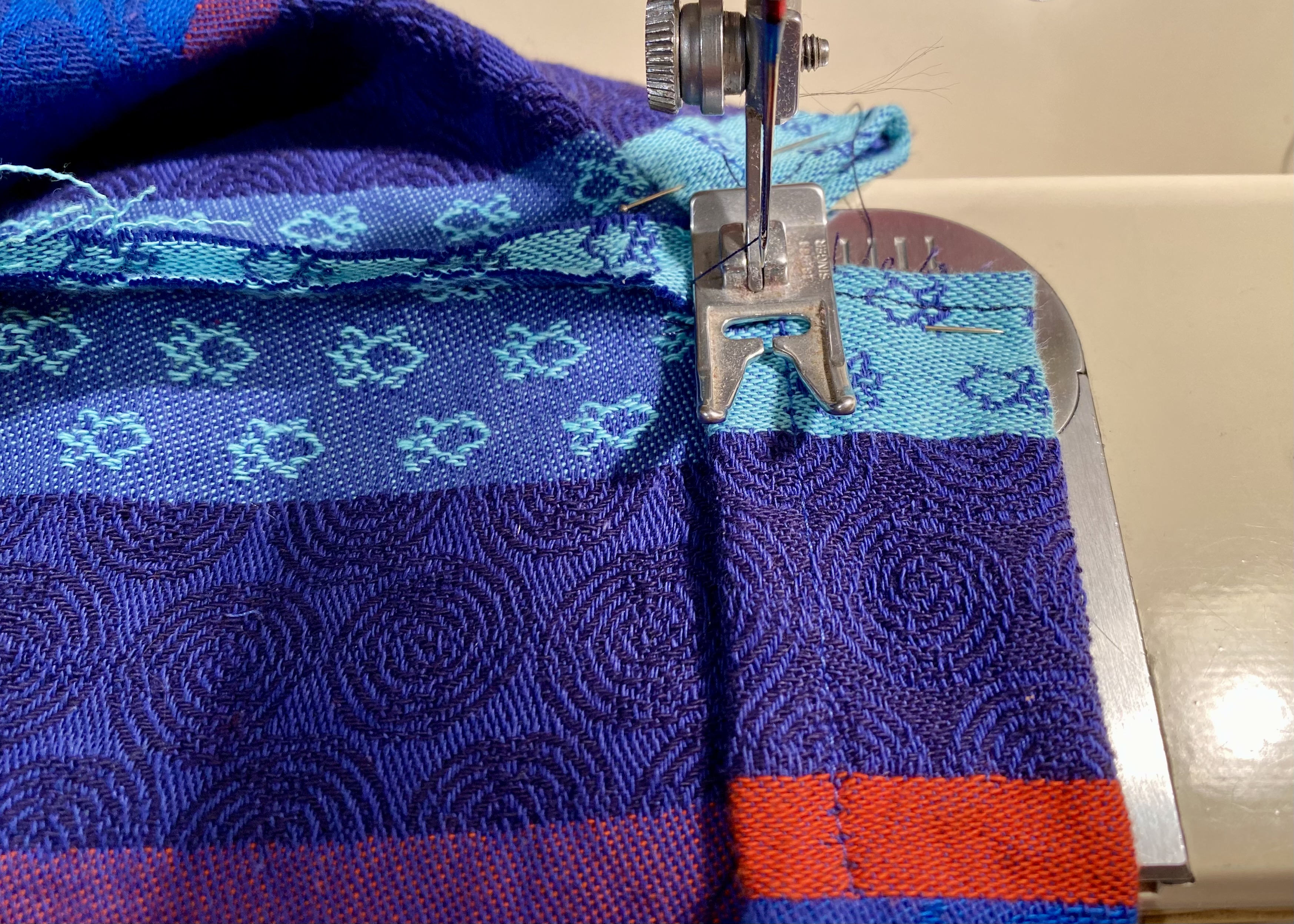 Fold dishtowel in half with right sides facing. If the towel is too wide for your intended use, trim off some of the width.