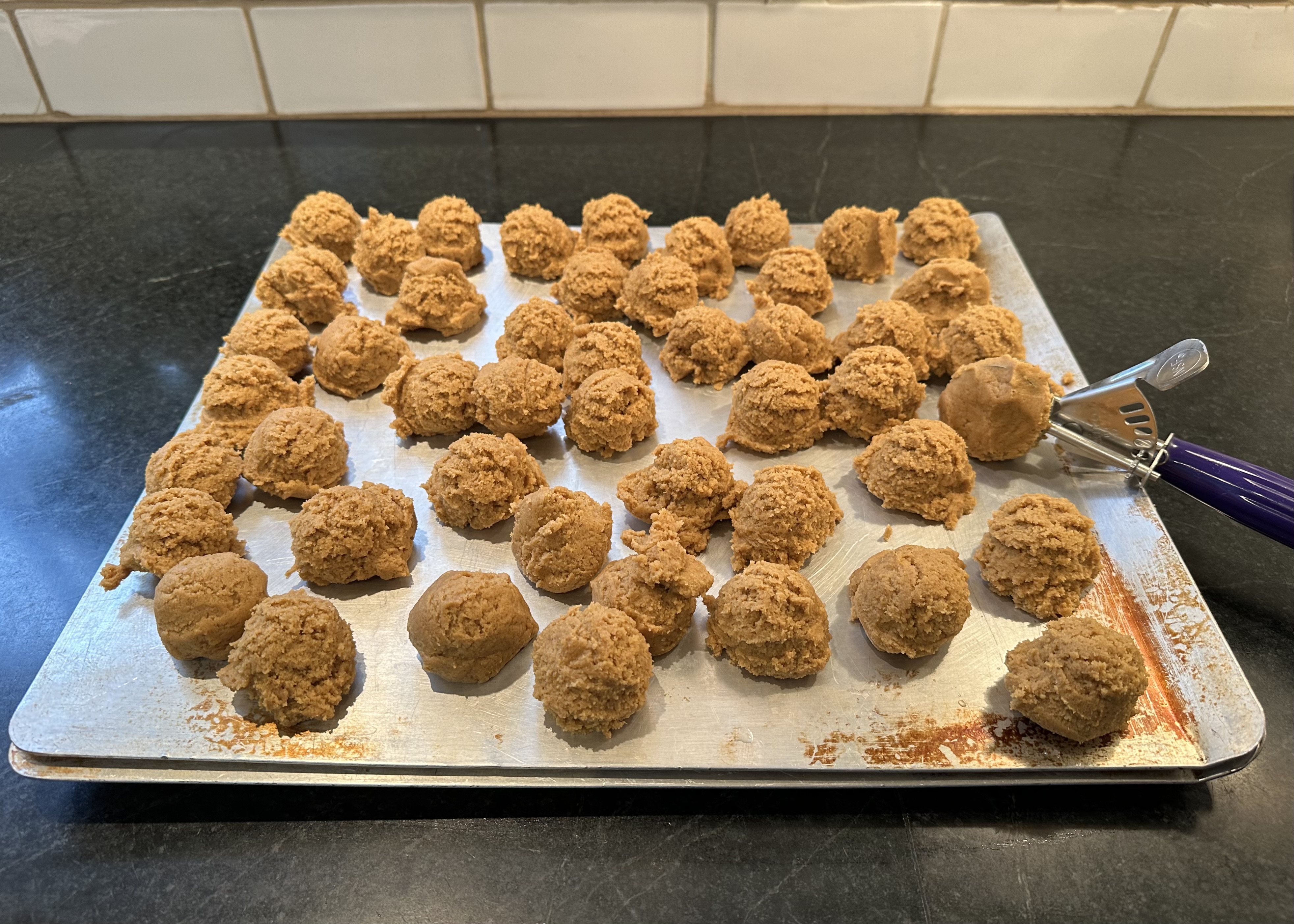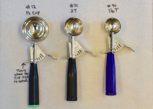 Bakeries use cookie scoops to portion dough to achieve consistent baking results. I once took a deep dive into the world of cookie scoops and learned that each scoop has a tiny number engraved on it that tells a baker how many cookies they will get from one quart of dough (or of ice cream, their initial intended use). Here’s a link: Cookie Scoops as a Unit of Measure. Who knew?
