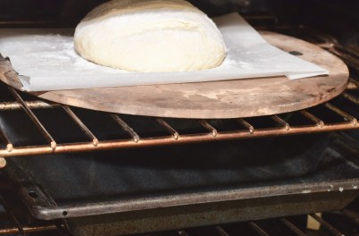 The dough will spread out as it rises. It doesn’t get tall. That’s okay; the heat and steam in the oven will cause the dough to rise and round out as it bakes. The process is referred to as “oven-rise.” As proof, I once dropped a loaf of risen dough on the flour as I was putting it in the oven. I picked it up, quickly reshaped it, put it back on the peel, and slid it into the oven. The bread still rose — higher than ever. It’s a mystery. (PS: I swear the floor was spotless.)