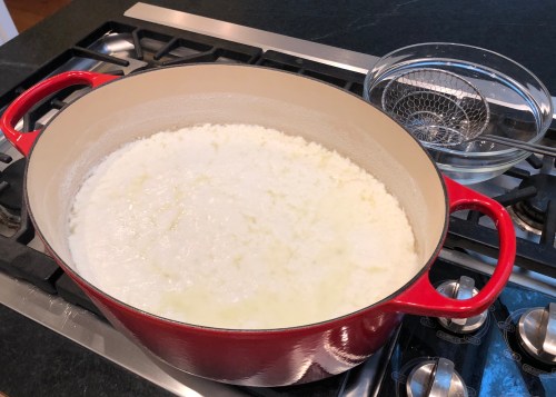 After two hours, you could make your first loaf of bread, but I prefer to put the dough in the refrigerator for a few hours or overnight. Chilling it makes the dough easier to shape into a boule, and it gives time for the flavors to become more complex. Do not punch the dough down. Ever.