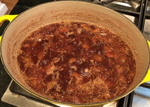 Measure juice. You should have about four cups. If you don’t, place a heavy object on top of the pulp to slowly release more juice. Sometimes I drizzle a little hot water over the pulp and use what drips out to make up the difference and get me to four cups.