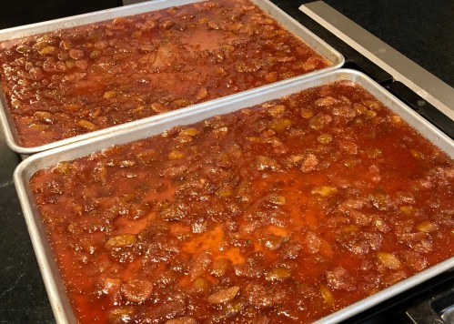 Pour hot figs into two rimmed sheet pans and roast for about 4-5 hours.