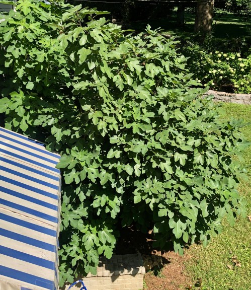 Fig trees are native to tropical climates, but a few varieties, such as Brown Turkey and Chicago Hardy, have been cultivated to grow in cooler climes (zones 6-11). We planted our tree in front of a southern-facing brick wall so the heat stored in the bricks could warm the tree during winter. Additionally, and this was purely happenstance, our air-conditioner’s condensate pipe drips over the roots all summer long keeping the tree well-hydrated.