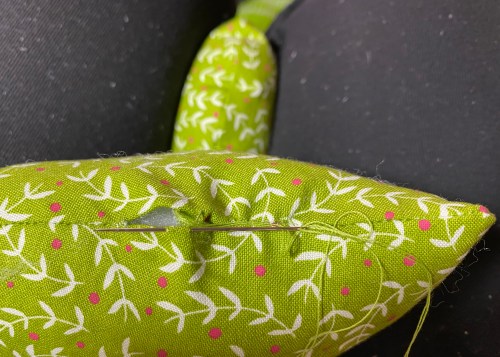 Once you fold the sides in and sew the seam, your mitt will look like this.