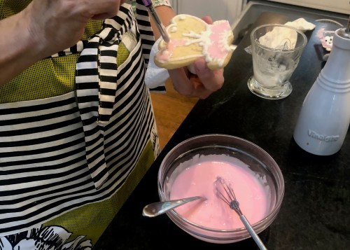 After the girls left, I decorated a few cookies for my grandchildren. I pushed the easy button on those and used a pastry brush to simply slather on the frosting. Still cute, especially when I added the fun sprinkles from The Kitchen Nashville.