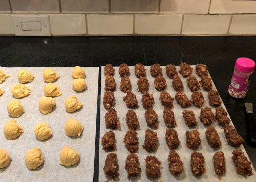 “They only have three ingredients: one egg, one cup of creamy peanut butter, and one cup of sugar,” said Katie. This easily-remembered recipe makes them perfect for scaling up in a commercial kitchen or at home.