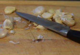 I divided the tomatoes into cherry (Juliettes and Sungolds) and the larger tomatoes (Romas and Lemon Boys). I found that garlic doesn’t stick well to whole cherry tomatoes, so I used garlic pepper for them.