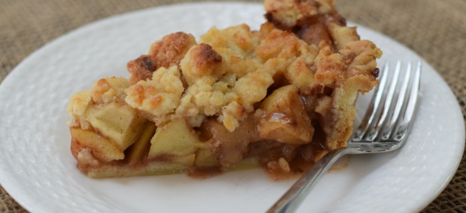 This recipe calls for a single crust on the bottom and a streusel-style crumble made of cheddar cheese, butter, flour, sugar, and salt, on top. Every time I make it, I add a just little more cheddar as I try to figure out just how much cheddar is too much for I love getting a taste of cheddar in every bite! Right now, I’m up to 1⅓ cups or four ounces. Mom’s original recipe called for 1/2 cup of cheese.