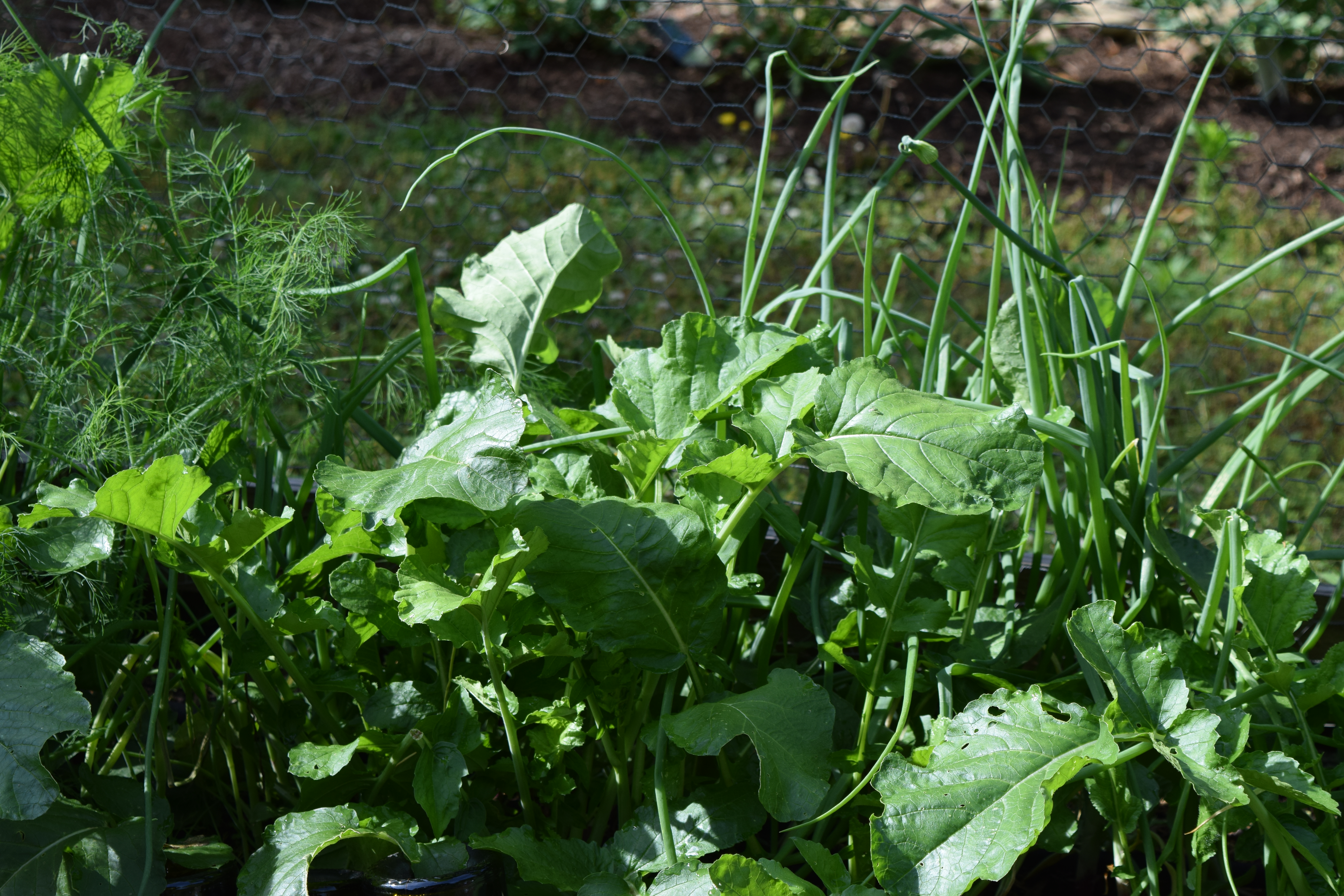 The Spring garden is producing! The lettuces, kale, collards, spinach, peas, spring onions (aka scallions), radishes, turnips, beets, carrots, garlic, and herbs are experiencing unfettered growth.