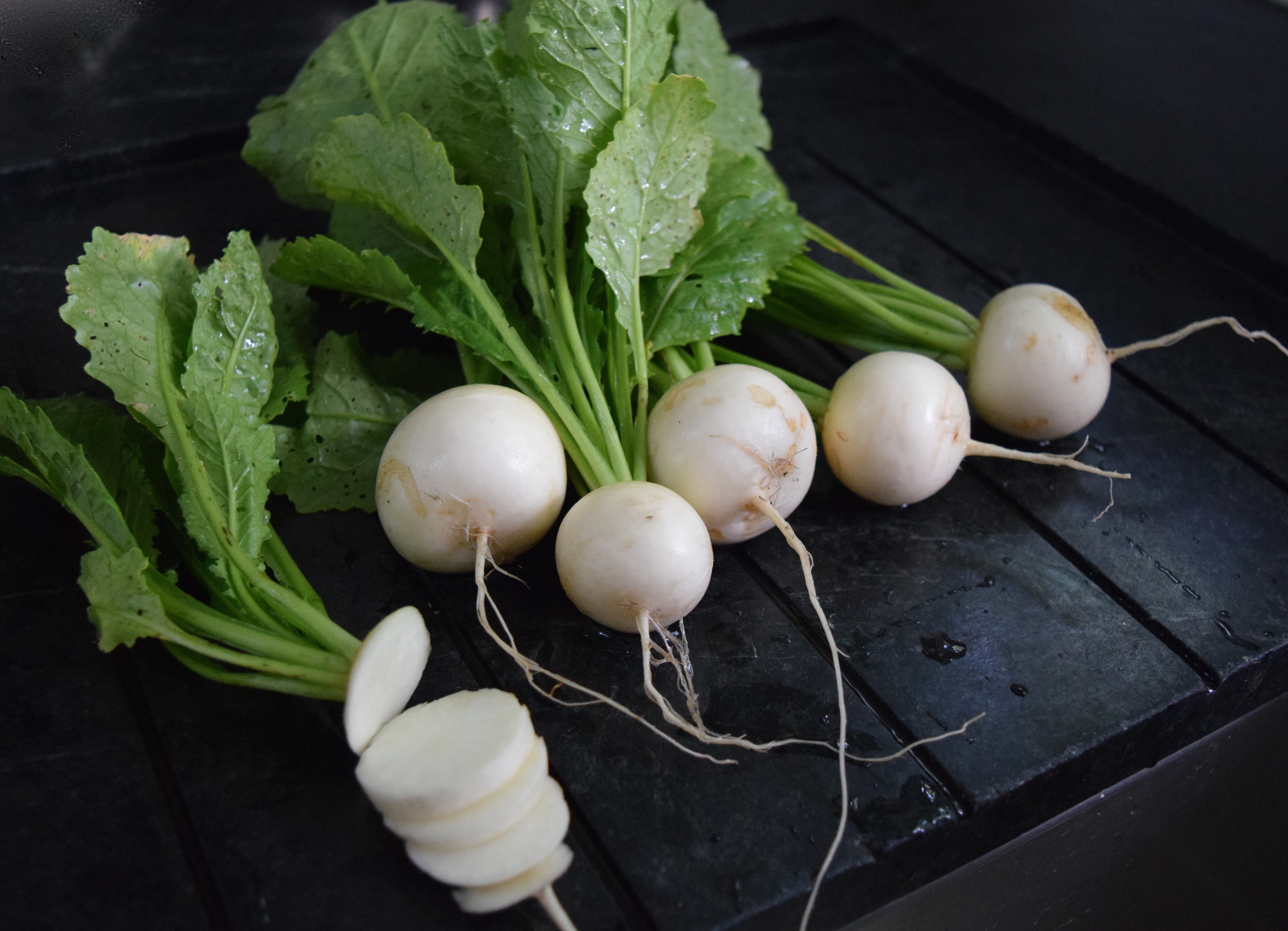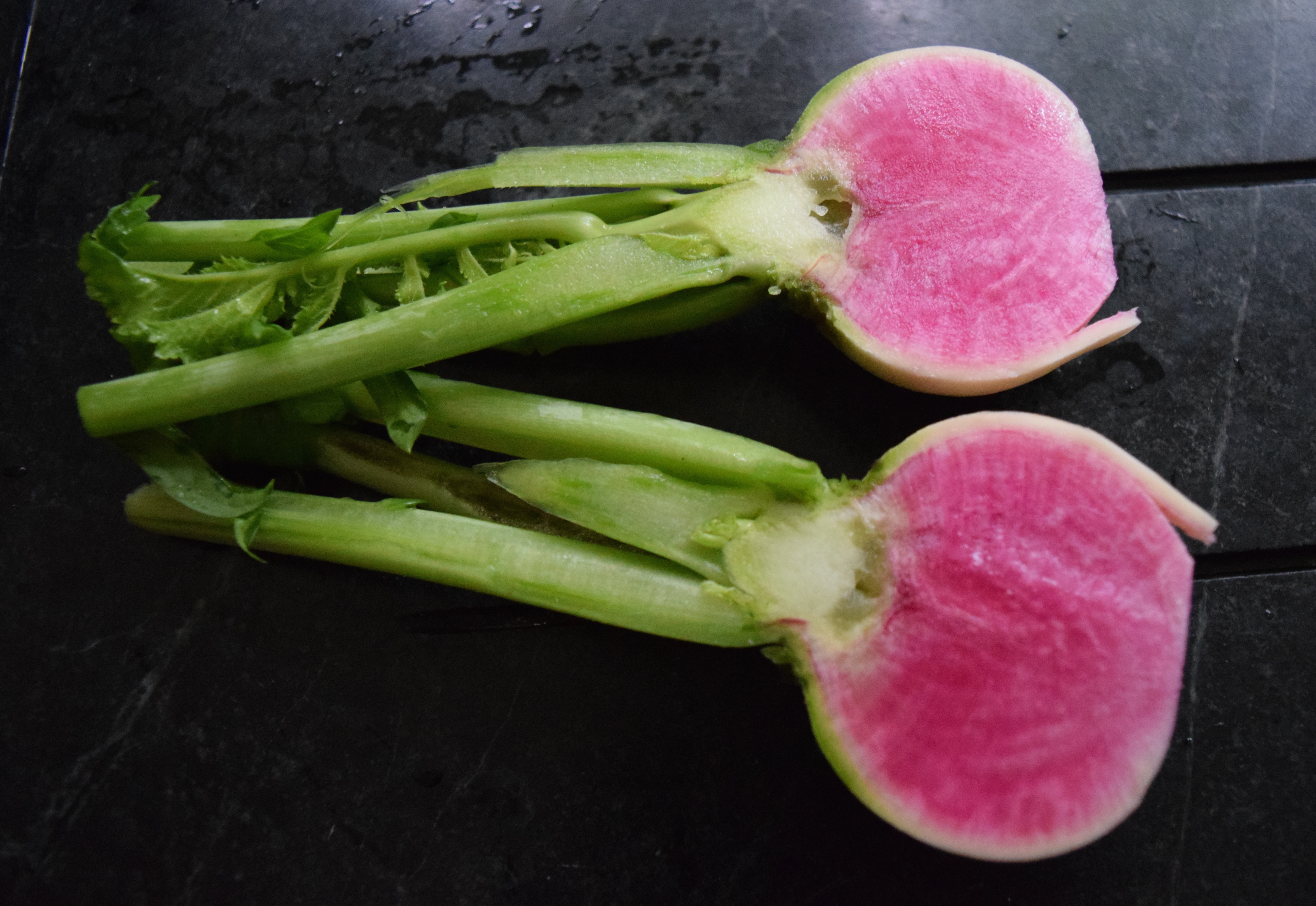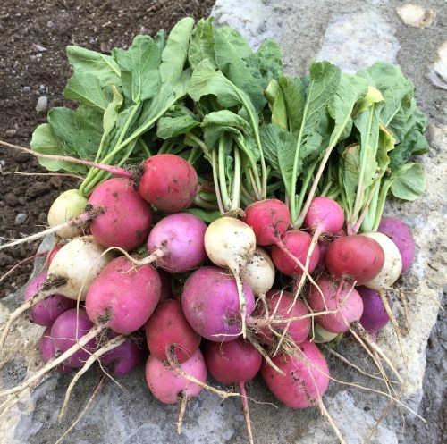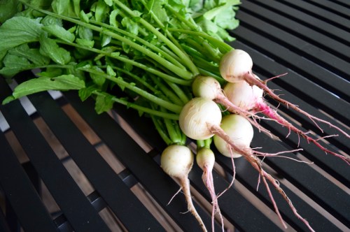 The bright white radishes were pretty and tasty.