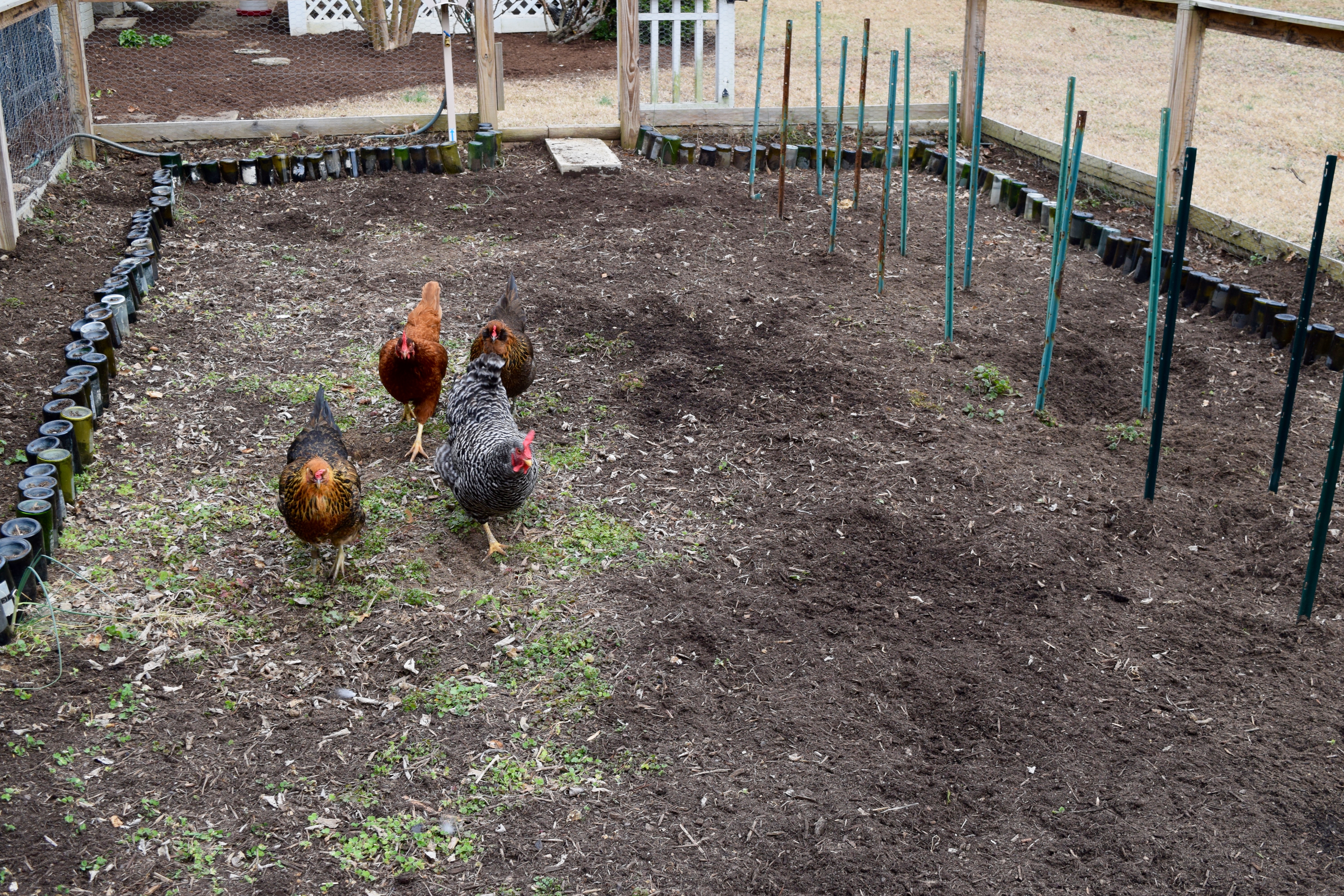 My favorite part is the “blackberry fence” Jeremy installed around the garden. He used four-foot high “rabbit” fencing to keep the chickens out. The blackberries are planted outside the fence.